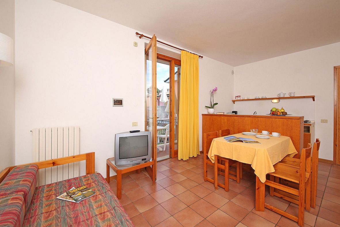 35 m² - 1 ložnice s manželskou postelí, obývací pokoj s kuchyňským koutem a rozkládacím gaučem pro 2 osoby, sociální zařízení se sprchou, balkon či terasa