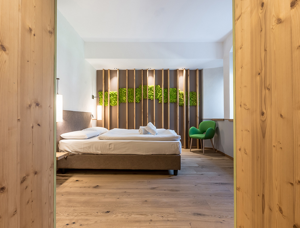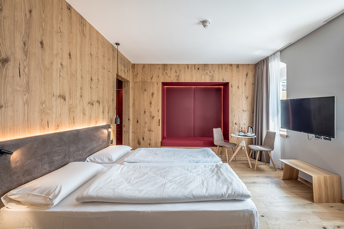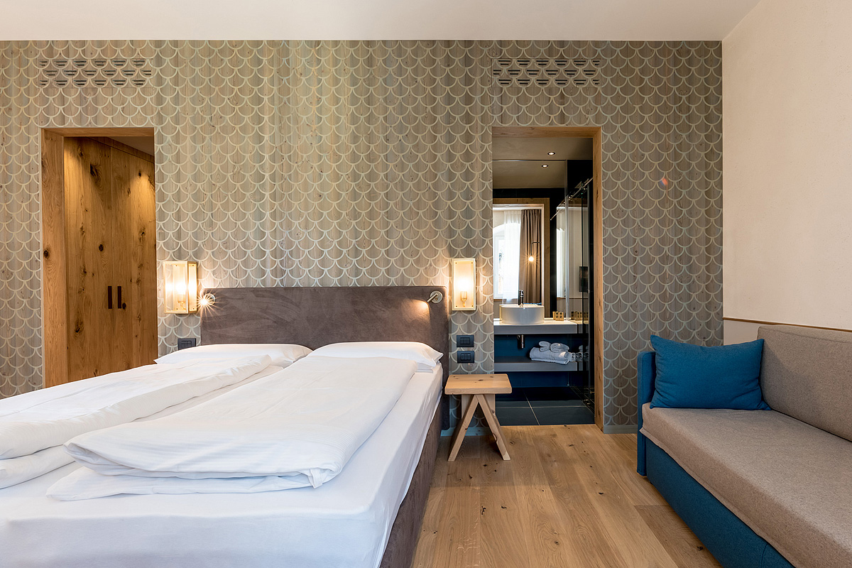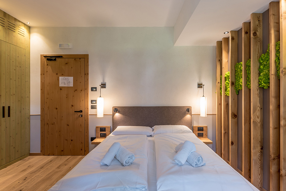 25 m² pokoj s manželskou postelí či 2 samostatnými lůžky, sociální zařízení se sprchou, 3. lůžko formou pevného lůžka či přistýlky pouze pro děti do nedovršených 16 let
