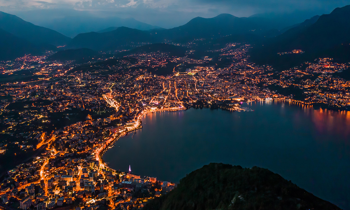 Do Itálie zasahuje několik výběžků jezera a také se na jeho břehu nachází italská exkláva Campione d'Italia, která je známá svými kasiny. Jižně od Lugana prochází přes jezero po náspu Melide dálnice a železnice spojující švýcarskou Bellinzonu s italským městem Como.