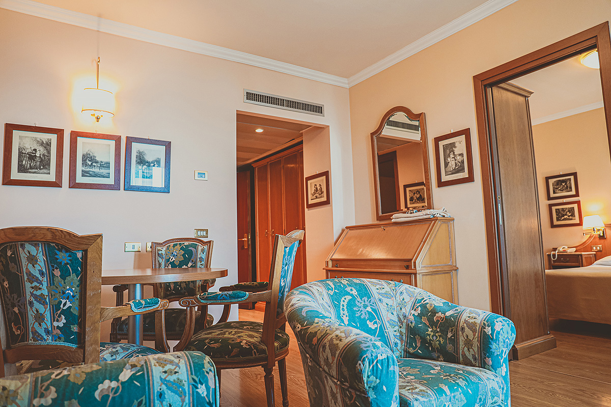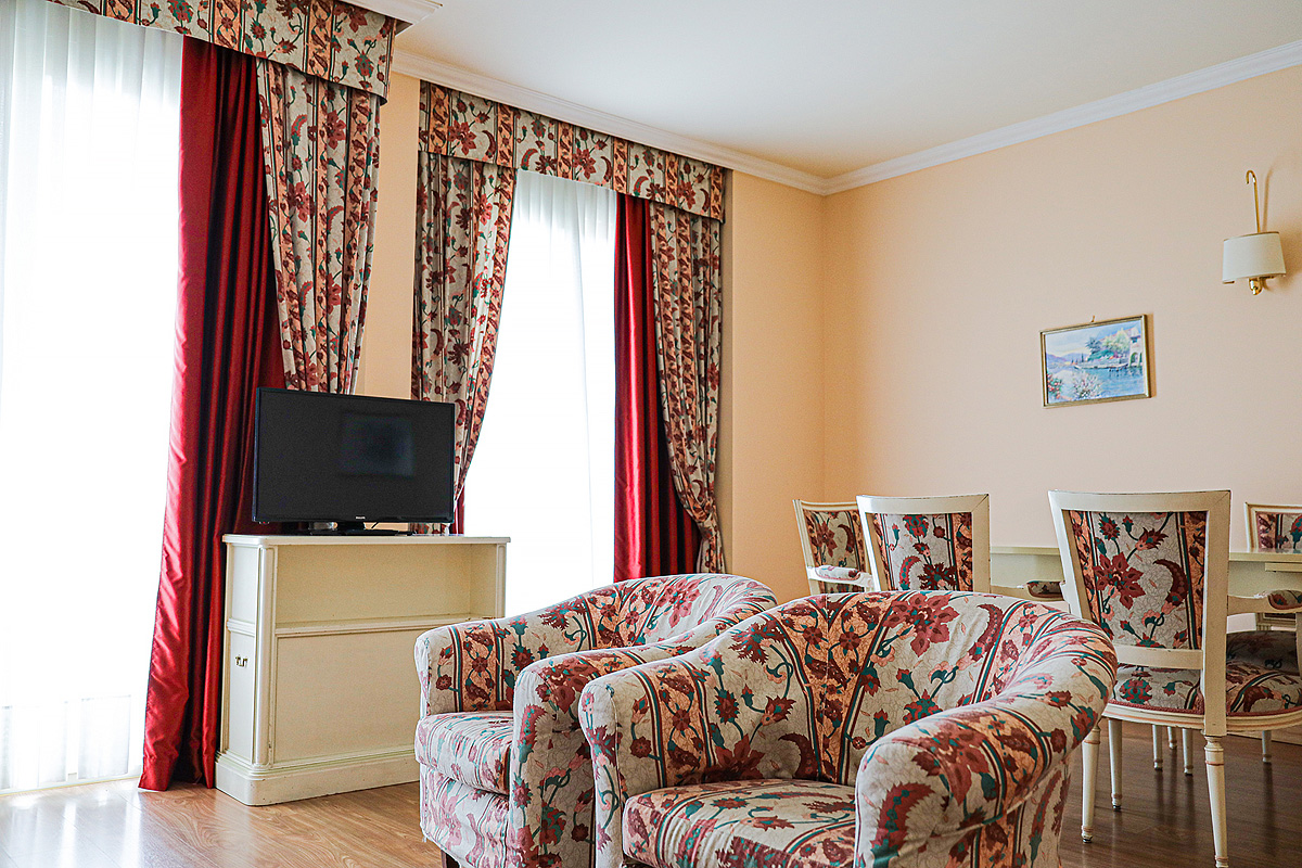klimatizace (od 15.6. do 25.8. nebo dle vedení hotelu), TV sat., telefon, wi-fi připojení k internetu max. 1 Gb za den, trezor, fén, mikrovlnka, elektrická trouba, kávovar či mokka