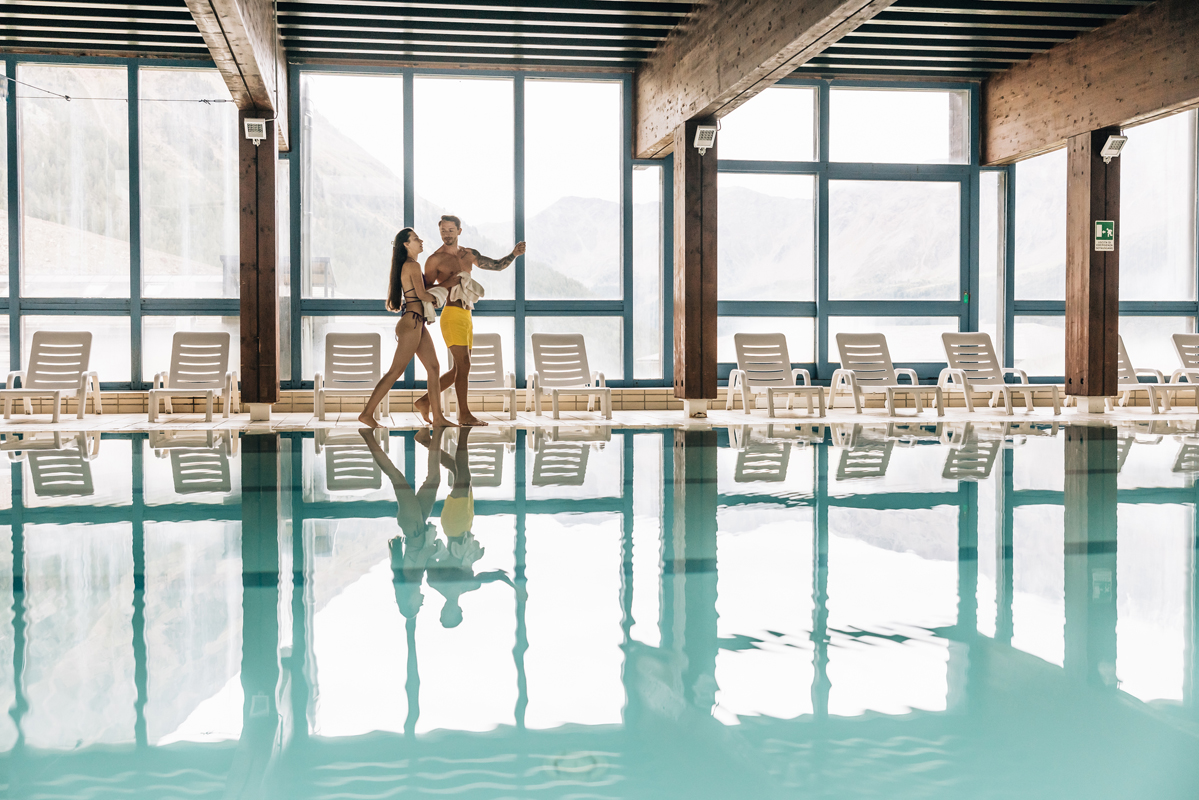 nabídka Blu Hotel Senales Zirm - Cristal - bazén 25 x 10 m s lehátky, vířivka#*, sauna#*, pára#*, relaxační koutek#* s lehátky, Kneippův chodník#*, masáže#*, posilovna#; služby označené # mohou využívat jen osoby od 16 let; nová venkovní panoramatická finská sauna na terase Aparthotelu Maso Corto* (na vyžádní)