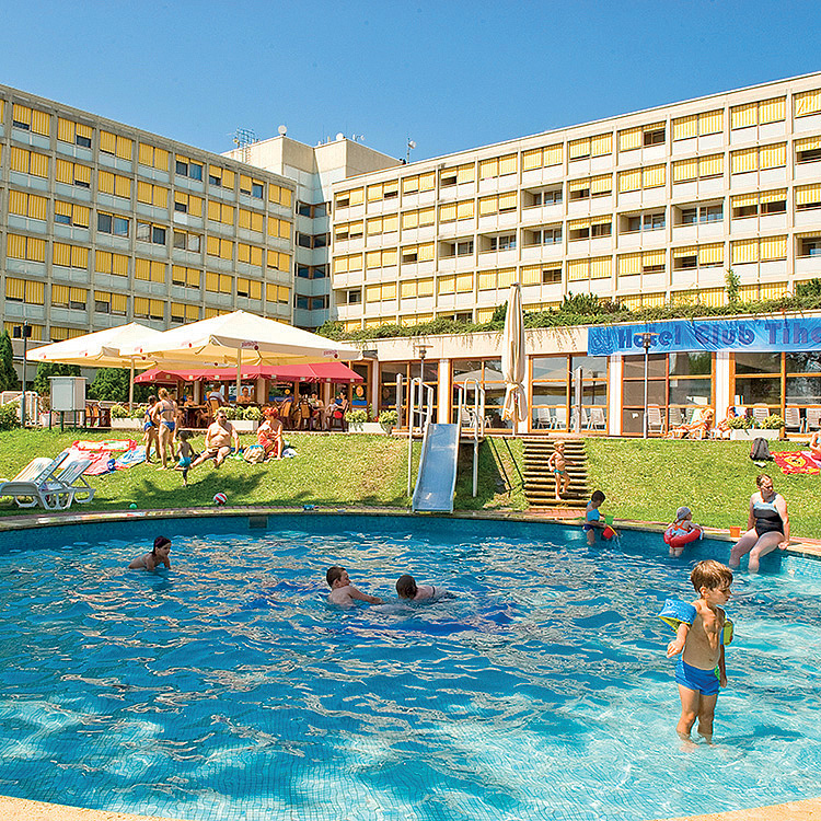 hotel obklopený rozlehlým parkem sousedícím s přírodní rezervací se skvělou polohou přímo u pláže na poloostrově Tihany, jedné z nejmalebnějších lokalit Balatonu
