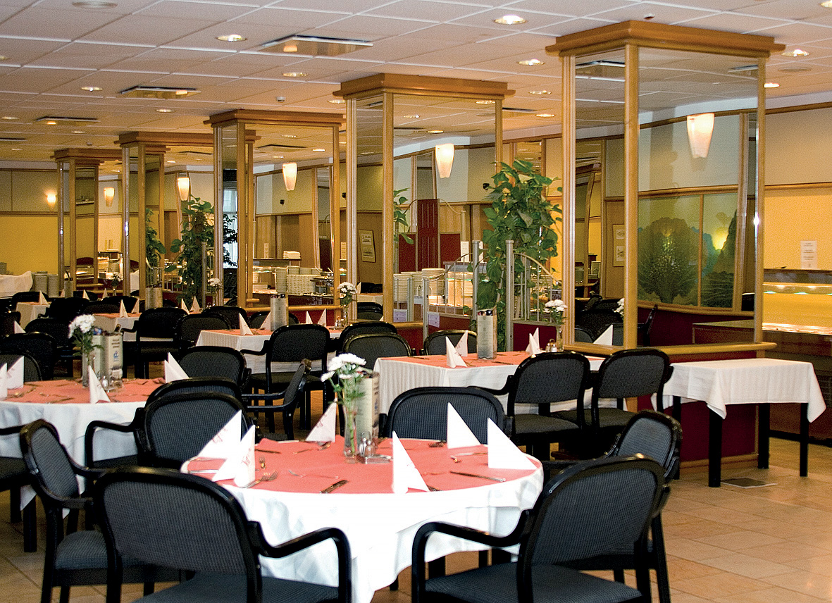 formou mezinárodního bufetu; nápoje za poplatek