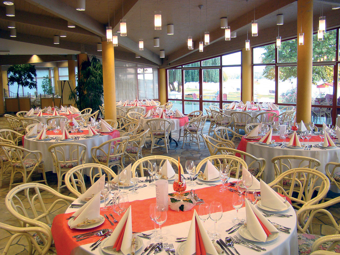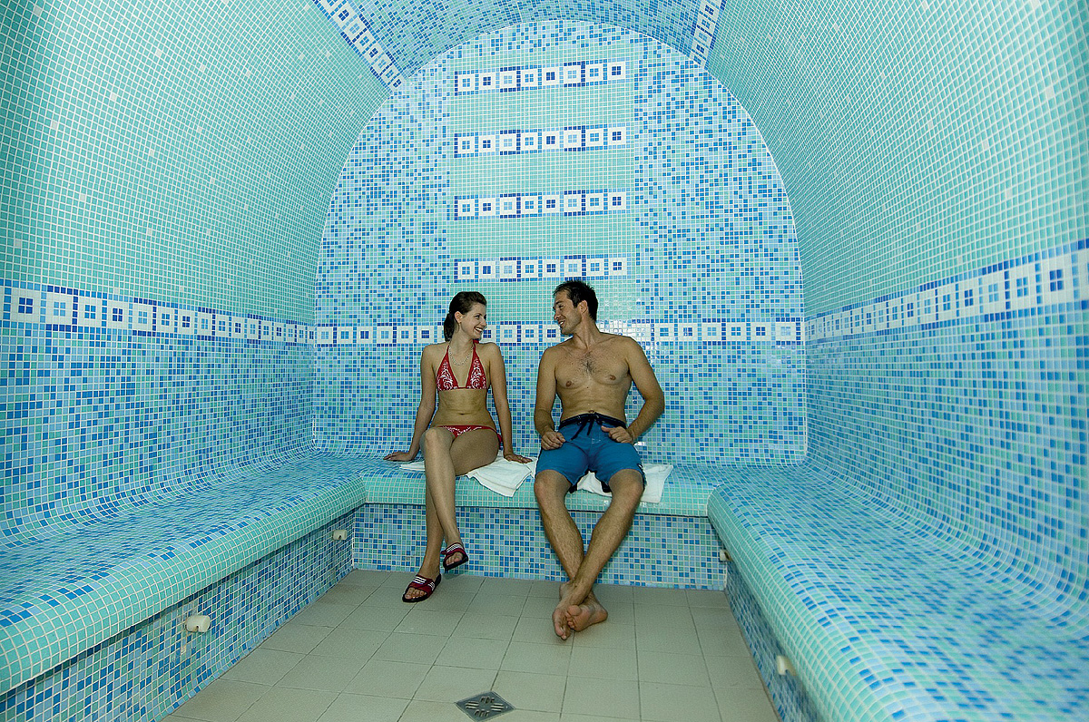 venkovní dětský bazének, krytý bazén, pára, sauna, infrasauna, pláž s lehátky, tobogán, masáže*, kosmetické služby*, posilovna, organizované sportovní programy (v letních měsících), půjčovna jízdních kol*, tenisové kurty*, minigolf*, vodní sporty*, bowling*, biliar*, stolní tenis*, squash*