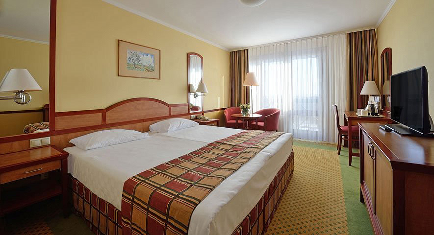 klimatizace, TV, telefon, wi-fi připojení k internetu, trezor, fén, varná konvice, minibar, župany do wellness