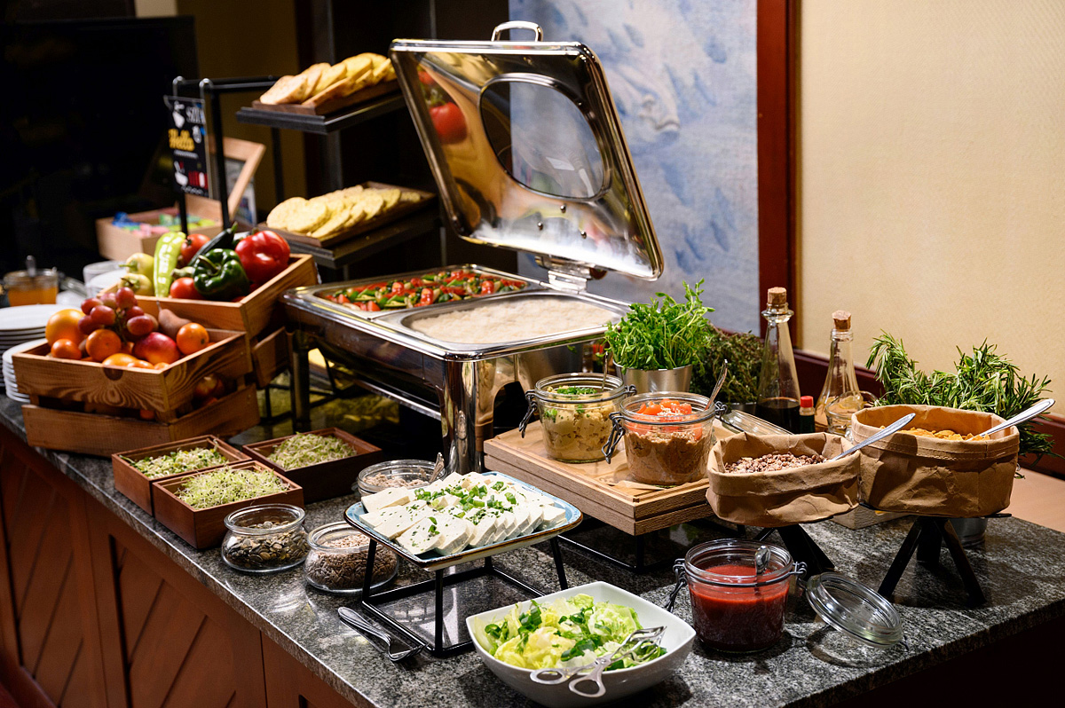 snídaně, oběd a večeře formou mezinárodního bufetu včetně nápojů; 10:00 - 12:00 čaje, káva, ovocné nápoje, pečivo, jogurty a ovoce, 14:00 - 17:30 odpolední snack, čaj, káva, ovoce, zmrzlina, 10:00 - 22:00 nealkoholické nápoje, 11:00 - 22:00 víno a pivo