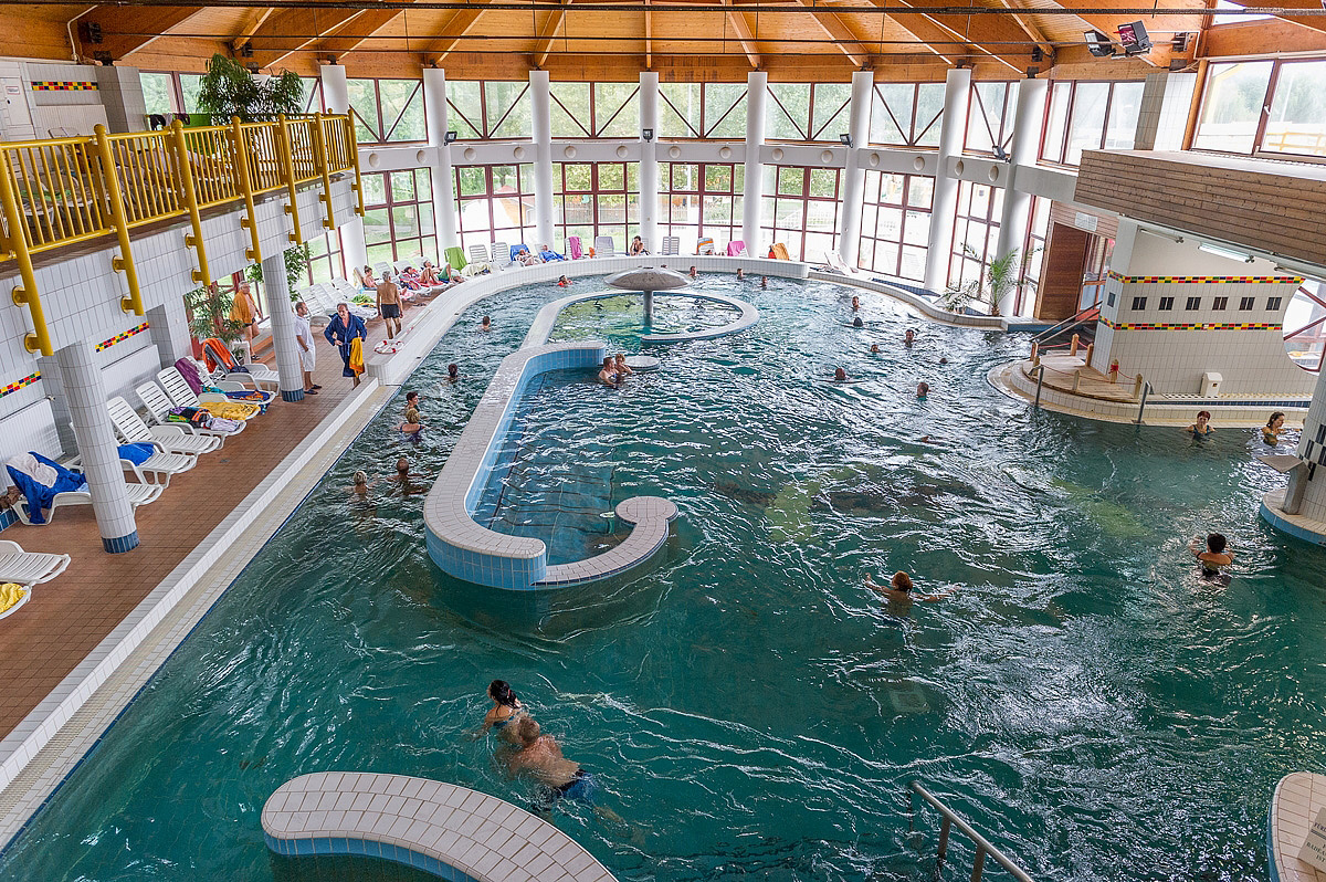 v ceně zahrnut vstup do městských lázní Zalakaros (propojeno podzemní vyhřívanou chodbou), v rámci lázní vnitřní a venkovní bazény, termální bazény, dětské bazény, aquapark, velká zahrada, posilovna, saunový svět*, léčebné terapie*, masáže*, lanový park*, hotel má v rámci městských lázní vlastní vyhrazenou zahradou s lehátky
