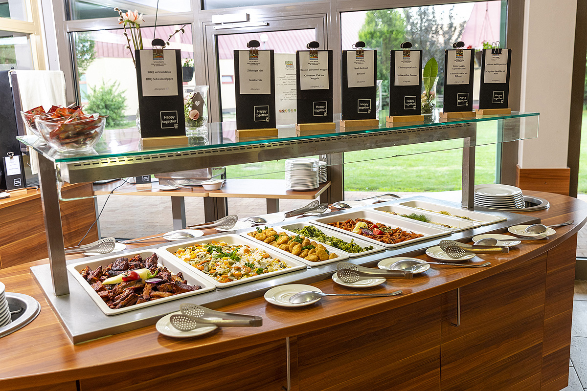 formou bufetu s výběrem mezinárodní i lokální kuchyně; nápoje za poplatek