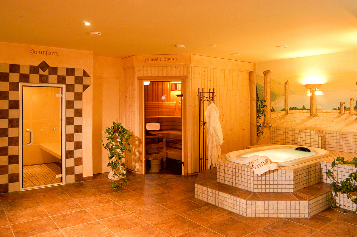 finská sauna, biosauna, pára, infrakabina, relaxační koutek s lehátky, posilovna, masáže*, kosmetické služby*