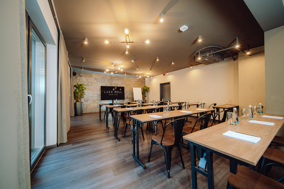 bazén 8 x 16 m, venkovní vyhřívaný bazén 8 x 16 m, vířivka, 2x venkovní vířivka, finská sauna, pára, relaxační koutek s lehátky, půjčovna kol* a elektrokol*; masáže*, kosmetické služby*