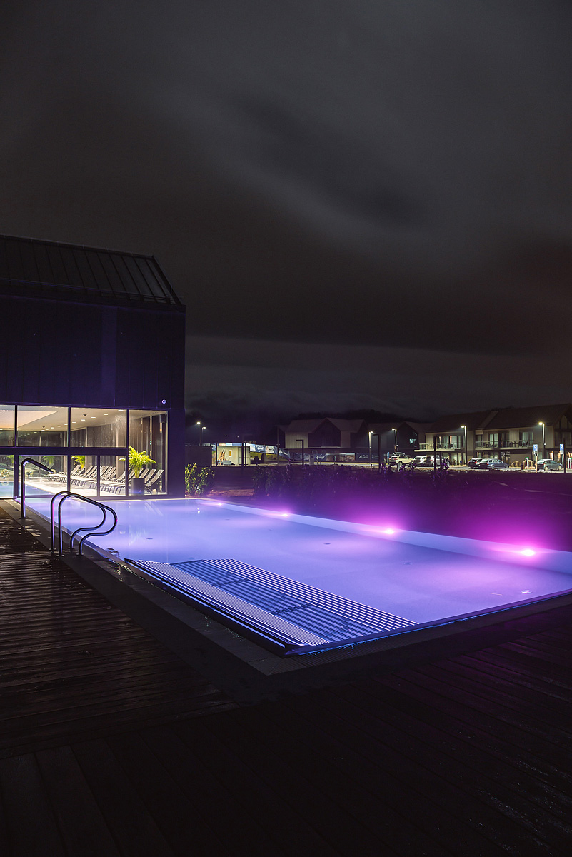 venkovní a vnitřní bazén s termální vodou 34-40 C, dětský bazén, vířivky, saunový komplex