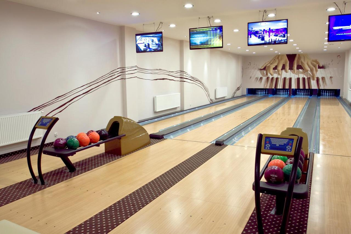 recepce, restaurace / bar, seminární místnost s projekční technikou a s wi-fi připojením k internetu, wi-fi připojení k internetu, úschovna kol, výtah, bowling*, biliár*, šipky*, vyhrazené parkoviště