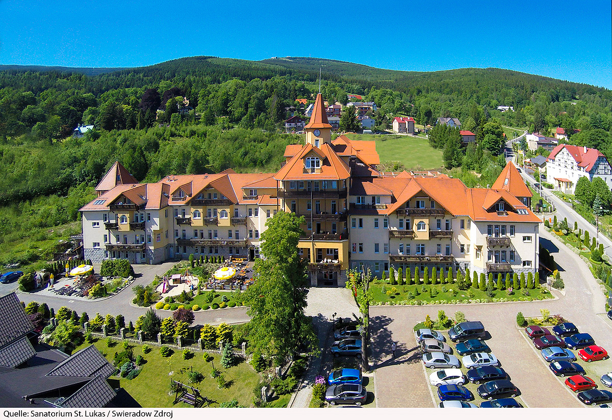 lázeňský hotel typické místní architektury v poklidné části střediska