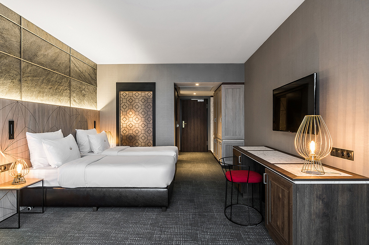 klimatizace, TV sat., telefon, wi-fi připojení k internetu, fén, trezor, set na kávu a čaj, minibar, set na žehlení, kosmetika, župany do wellness