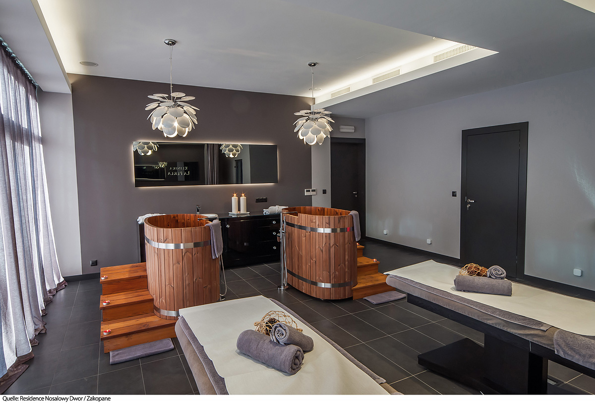 bazén 70 m², pára#, sauna#, finská sauna#, Bio sauna#, vířivka#, masáže*, kosmetické služby*, široká nabídka léčebných a regeneračních procedur*, posilovna, biliár*, půjčovna kol*, služby označené # mohou využívat děti až od 18 let