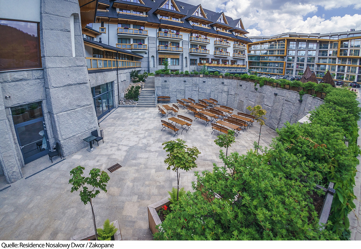 rozsáhlý komplex vzájemně propojených budov sestávajících z 4* hotelu, 3* hotelu a 4* Residence I a II
