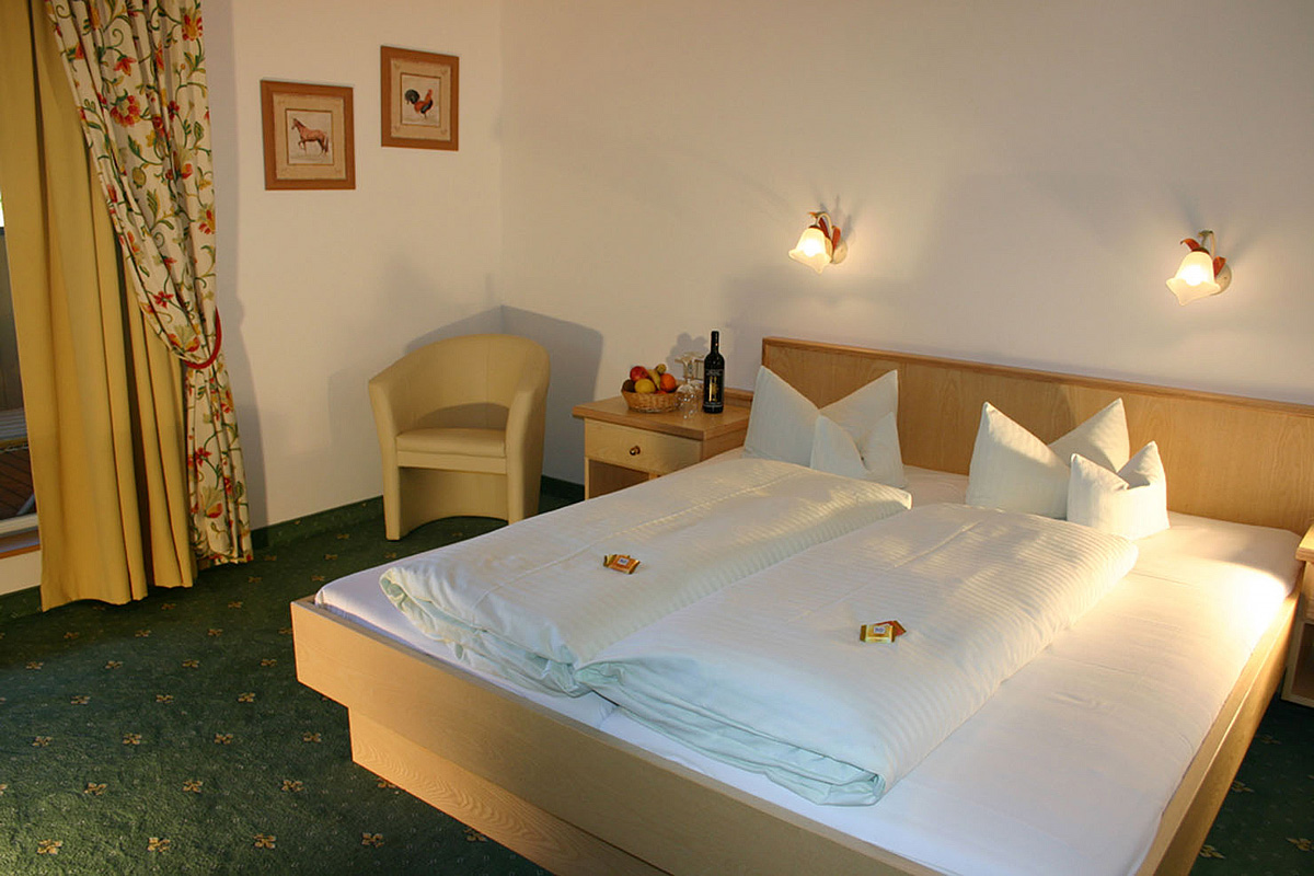 19 m² - pokoj s manželskou postelí, sociální zařízení se sprchou či vanou, zřídka balkon; infant nad maximální obsazenost pokoje není povolen!