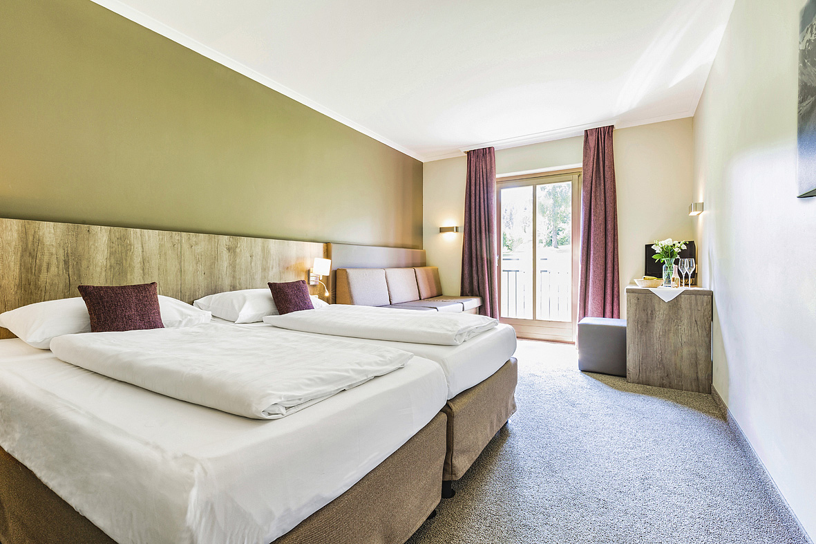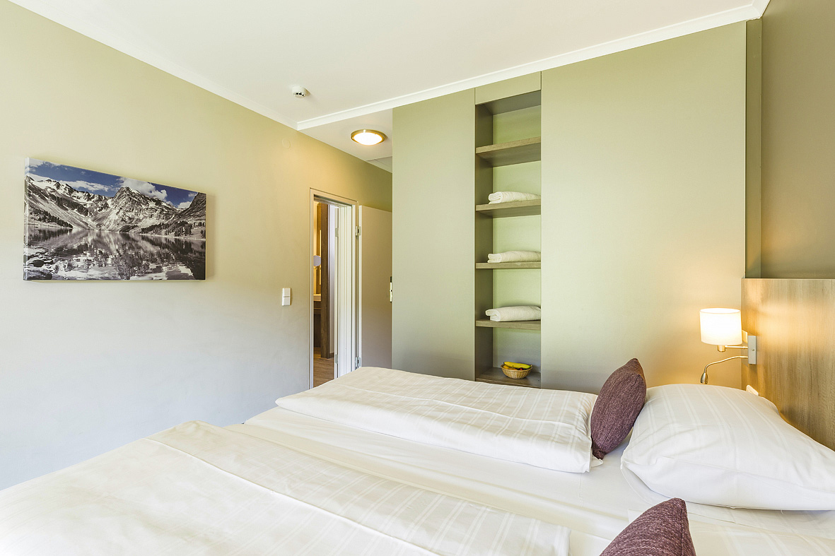 24 m² - pokoj s manželskou postelí a 1 lůžkem (80 x 190 cm) pro 1 dítě do nedovršených 18 let, sociální zařízení