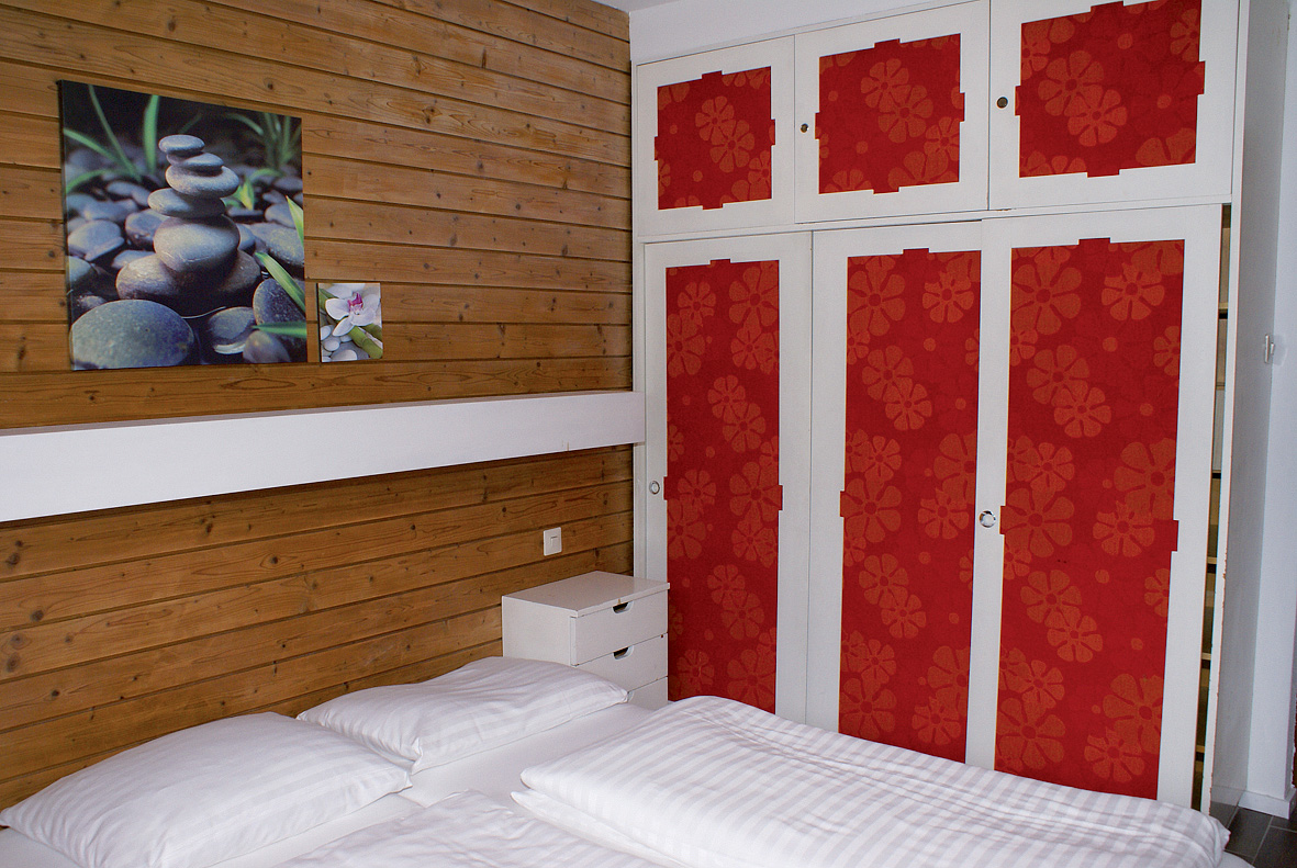 35 až 40 m² - 1 malá ložnice se 2 samostatnými lůžky, obývací pokoj s kuchyňským koutem a rozkládacím gaučem pro 1 osobu, předsíň, sociální zařízení zpravidla s vanou, zřídka balkon