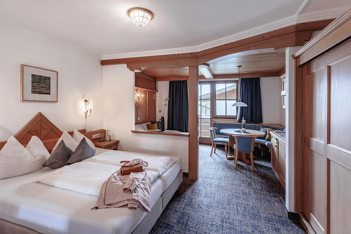 31 m² - obývací pokoj s kuchyňským koutem, manželskou postelí a rozkládacím gaučem pro 2 osoby, sociální zařízení, balkon