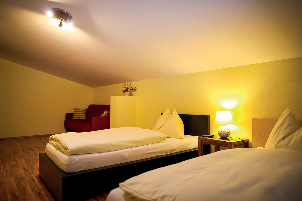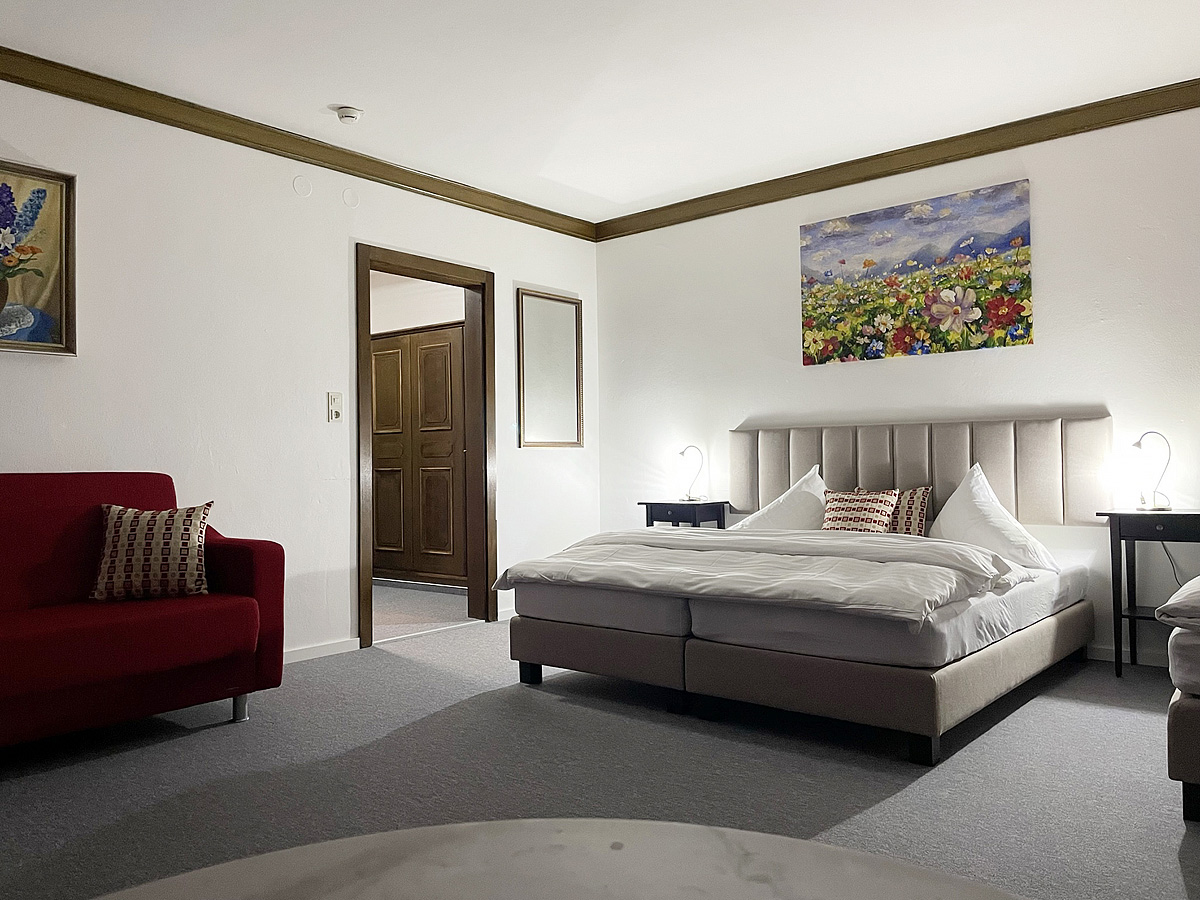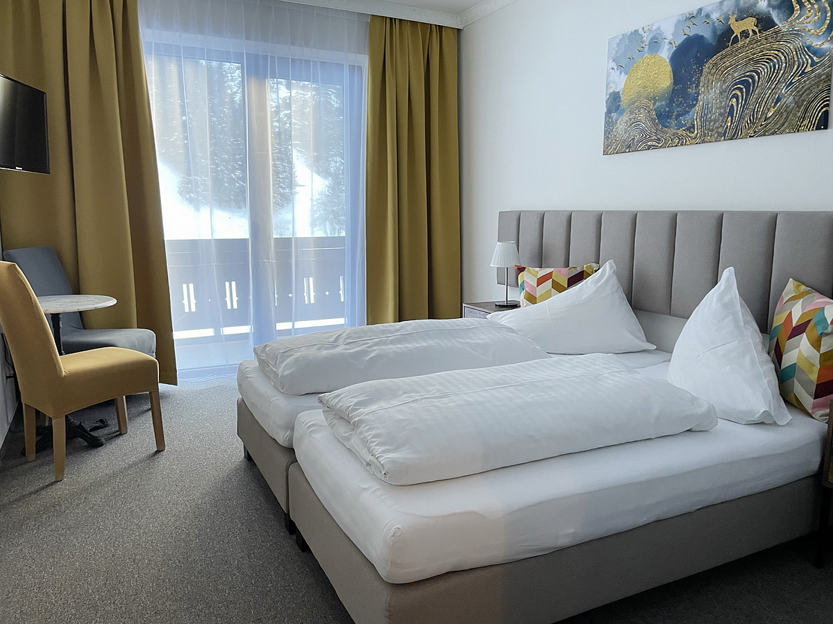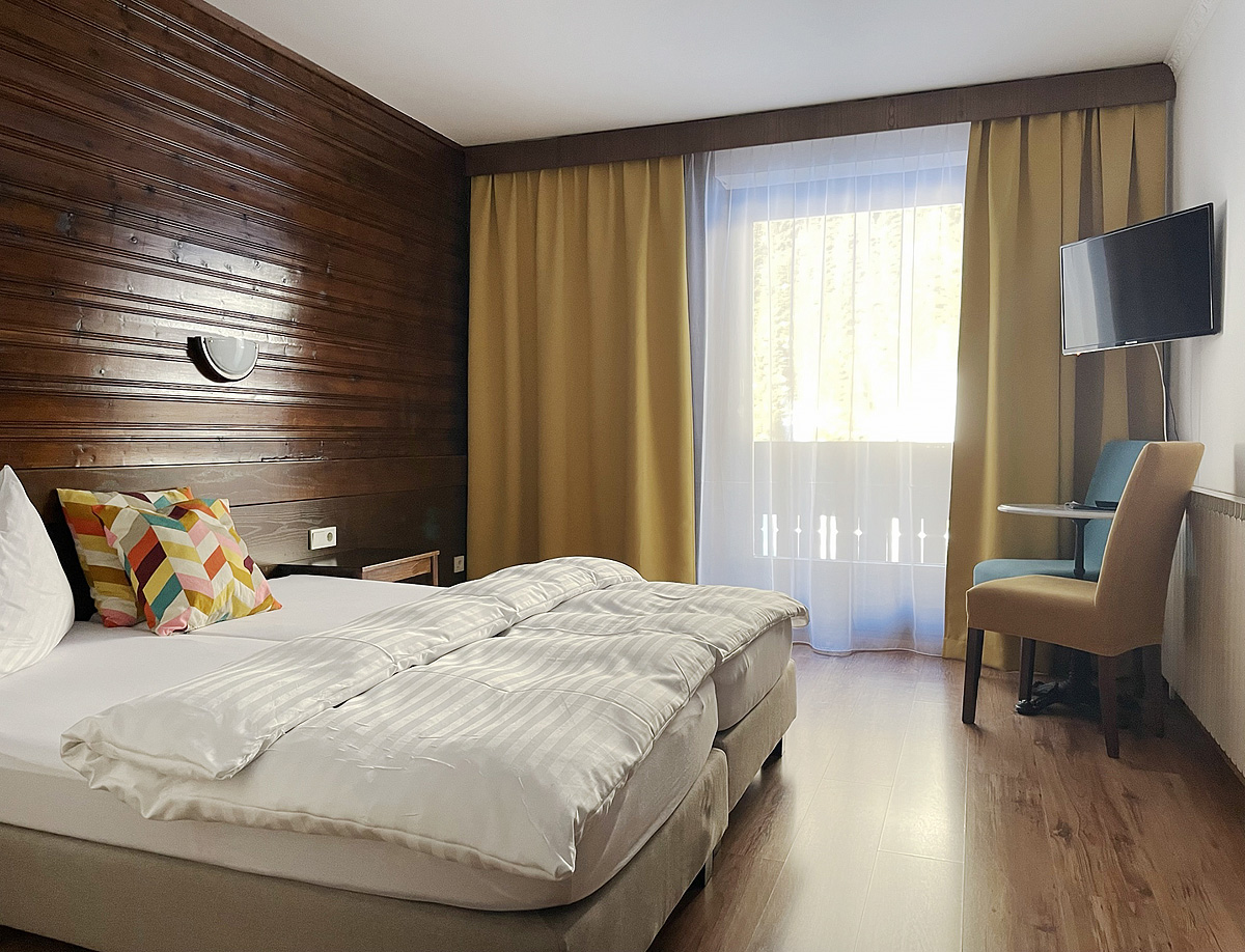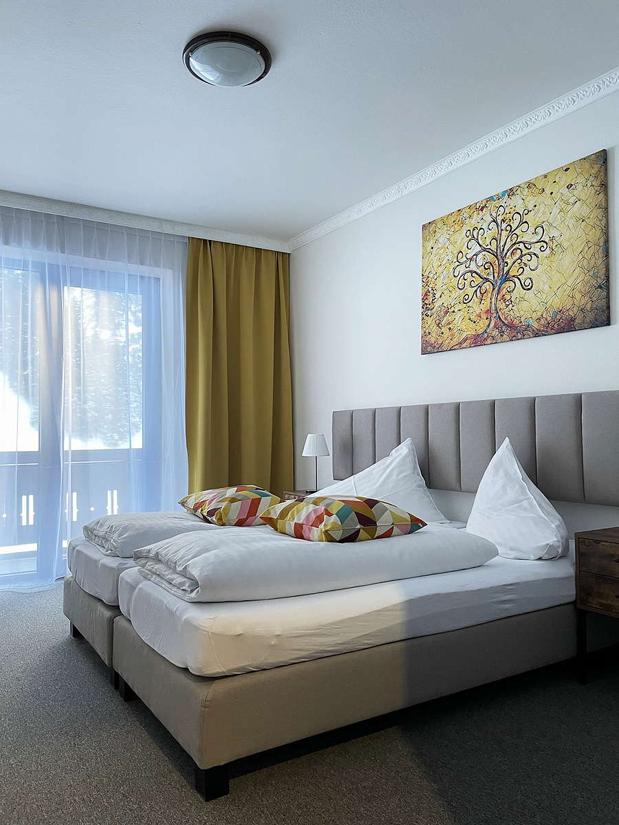 2 navzájem propojené dvoulůžkové pokoje, jeden s manželskou postelí, druhý zpravidla se 2 samostatnými lůžky, sociální zařízení, zpravidla balkon; na vyžádání možnost 5. a 6. lůžka formou rozládacího křesla či přistýlky, minimální obsazenost 4 plně platící osoby