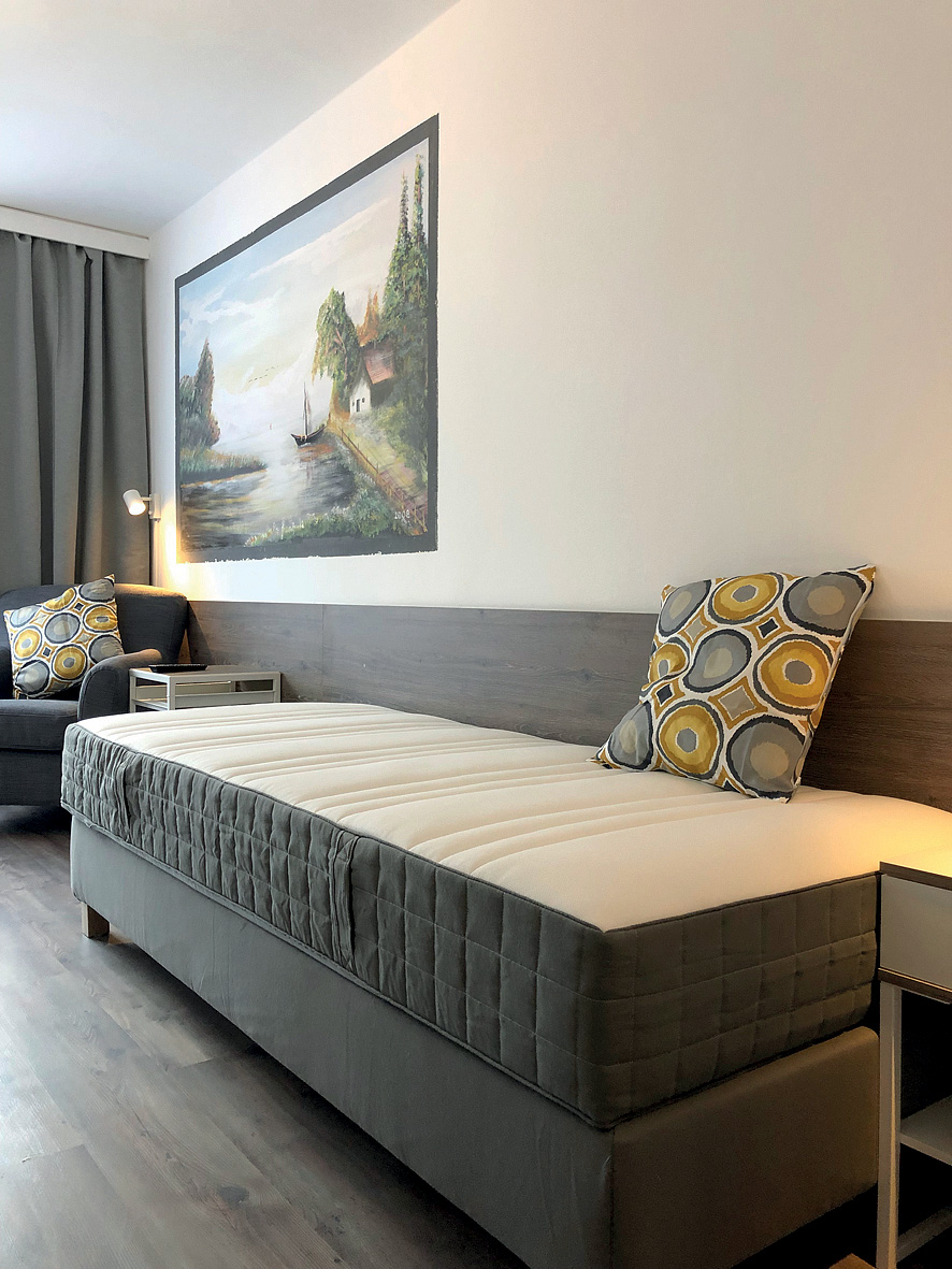 pokoj s 1 samostatným lůžkem, sociální zařízení, zpravidla balkon