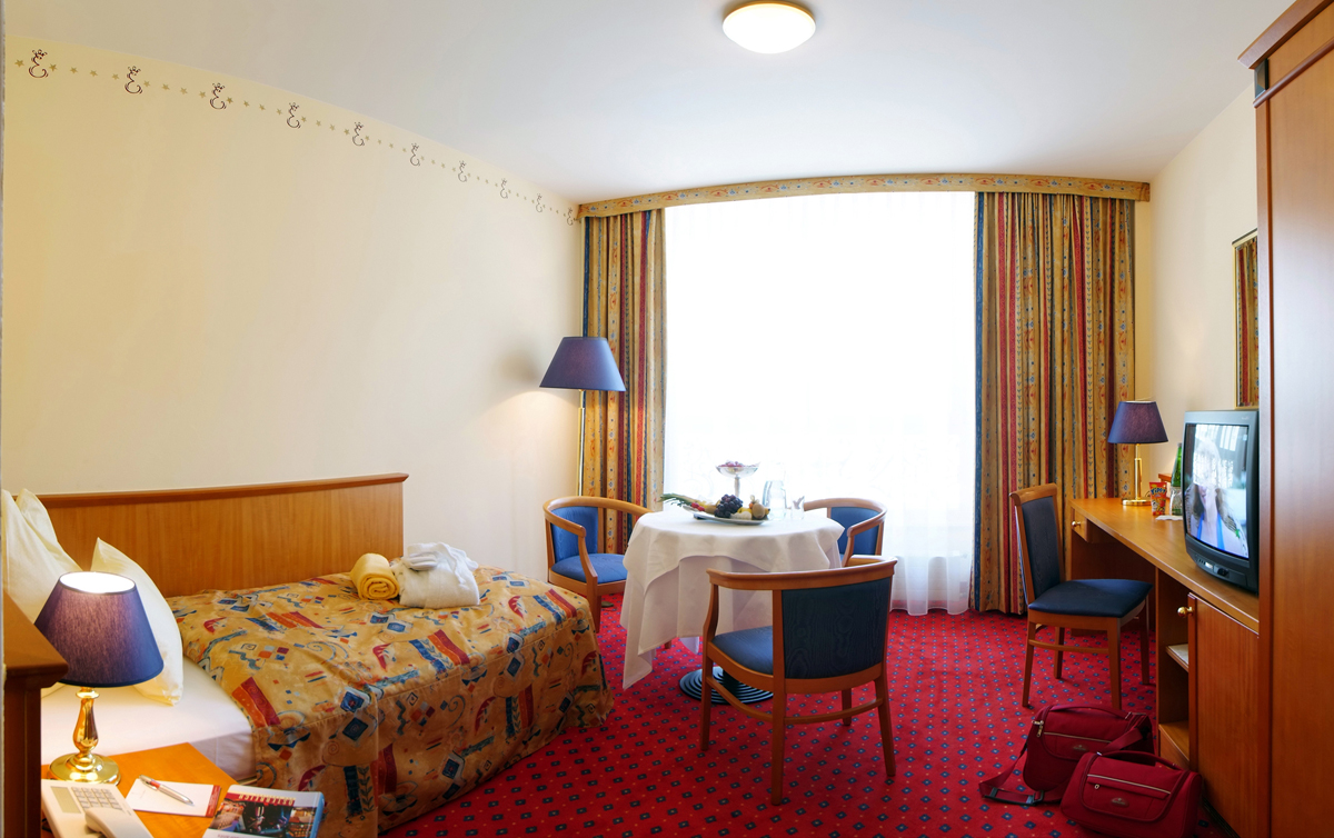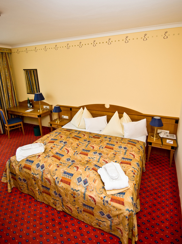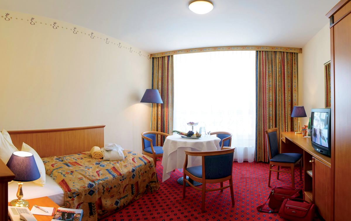 TV sat., rádio, telefon, fén, trezor, minibar*, wi-fi připojení k internetu, župany* a pantofle* do wellness (na vyžádání)