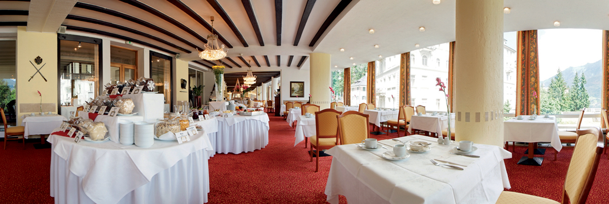 zpravidla formou 4chodového bufetu s výběrem z několika hlavních jídel s přílohou, nápoje za poplatek; veganská a vegetariánská strava za příplatek 12 €/chod, bezlaktózová a bezlepková strava bez příplatku; při pozdním přijezdu lze do 20.30 hod. nahlásit zájem o studenou večeři (talíř na pokoj)