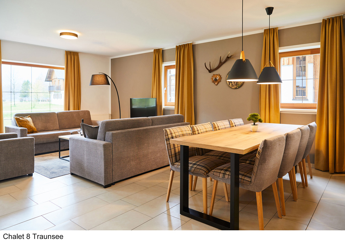 Obertraun, centrum - 500 m, jezero Hallstätter See - max. 400 m (v závislosti na poloze chaletu), lanovka Krippenstein - 3,6 km, Hallstatt - 5 km, Bad Ischl - 25 km