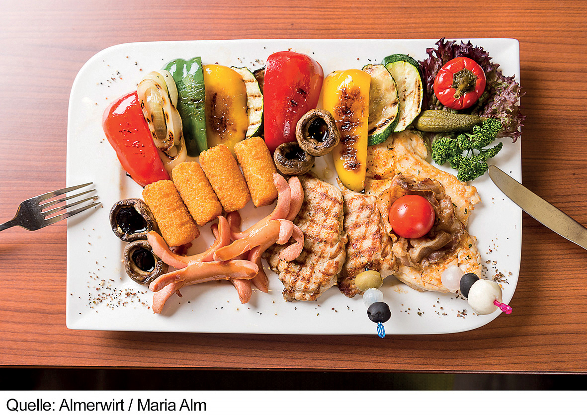 večeře - servírované 3chodové menu, zpravidla salátový bufet; nápoje za poplatek
