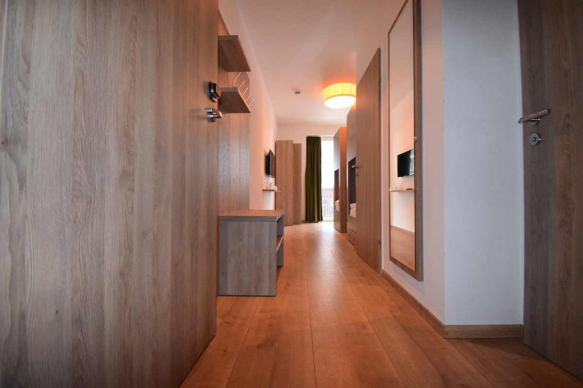 20 m² - pokoj s manželskou postelí a 1 samostatným lůžkem, sociální zařízení, balkon