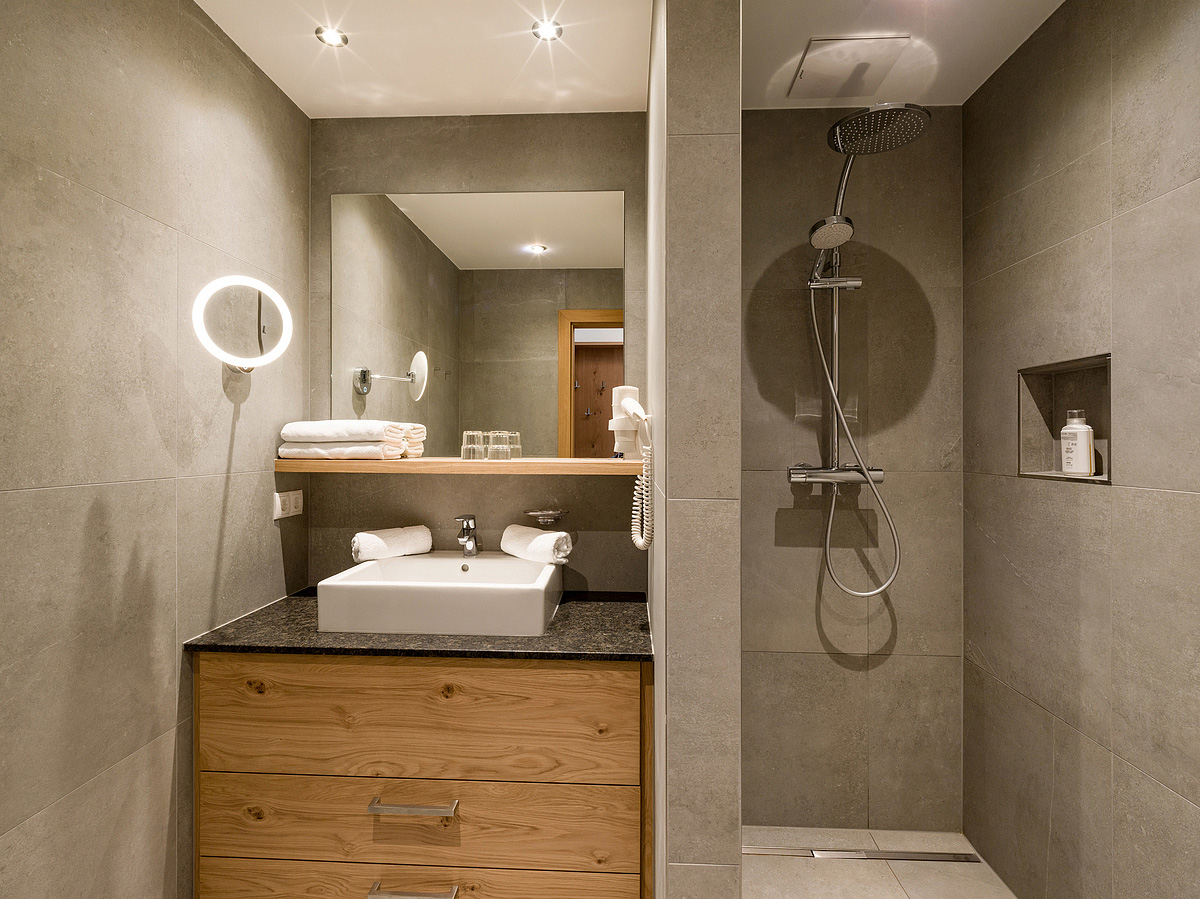 25 m² - pokoj s manželskou postelí a případně přistýlkou pro 1 osobu, sociální zařízení se sprchou, balkon