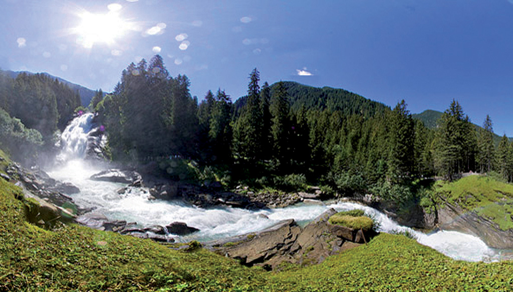 Nevelký romantický Krimml leží na území Salcburska v regionu Pinzgau nedaleko hranice s Tyrolskem. Krimmler Achental sousedí přes průsmyk Gerlospass (1.531 m.n.m.) se známým Zillertalem, jenž je doslova továrnou na letní i zimní sporty (rád používá označení „nejaktivnější údolí světa“, takže je logické, že škálu aktivit zde můžete očekávat skutečně přepestrou). Jeho boční, vysoko položené, Tuxské údolí je zakončeno známým skiareálem s největším rakouským ledovcem Hintertux předkládajícím celoročně úctyhodných 86 km sjezdovek v nadmořských výškách až do 3.250 metrů. Ovšem i v Pinzgau lze po část letní sezóny vyzkoušet totéž na neméně známém ledovci Kitzsteinhorn nad Kaprunem, i v největších letních vedrech se tak můžete z Krimmlu vyjet zchladit a dopřát si úžasné lyžařské zážitky.