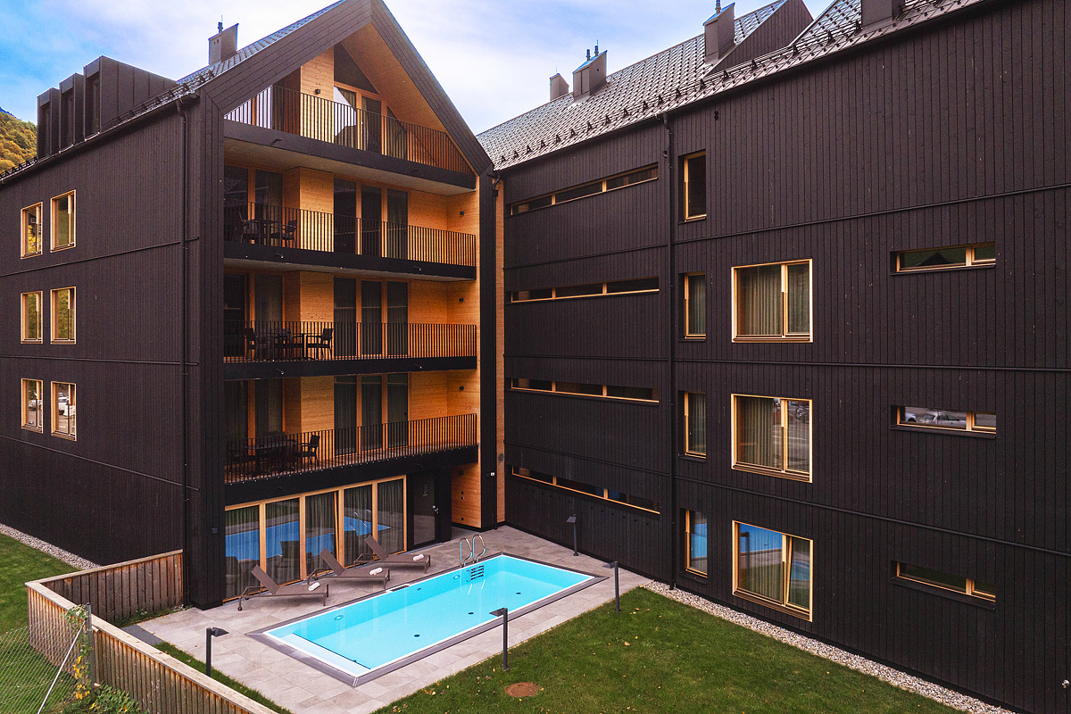 moderní apartmány s venkovním bazénem a wellness zázemím pro ideální relaxaci po aktivně stráveném dni na horách