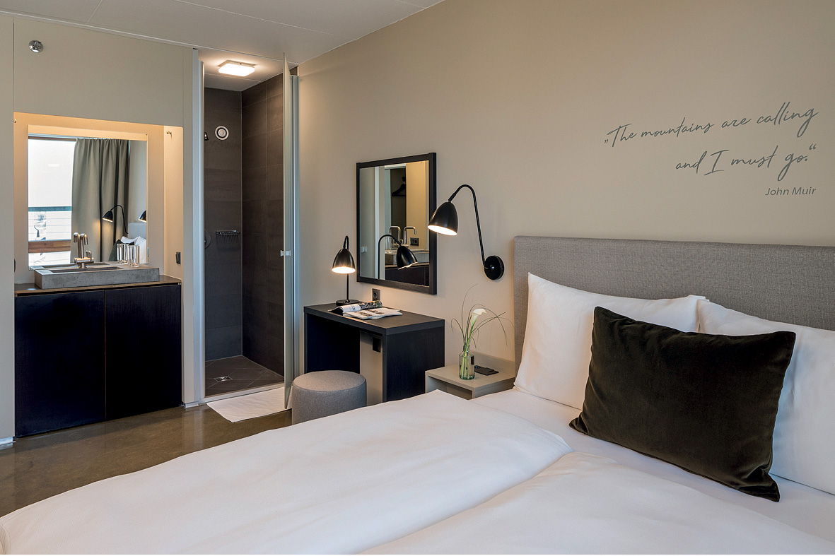38 m² - pokoj s manželskou postelí a rozkládacím gaučem (šíře 140 cm) pro až 2 osoby, sociální zařízení, předsíň / úschovna kol, min. obsazenost pokoje jsou 4 osoby