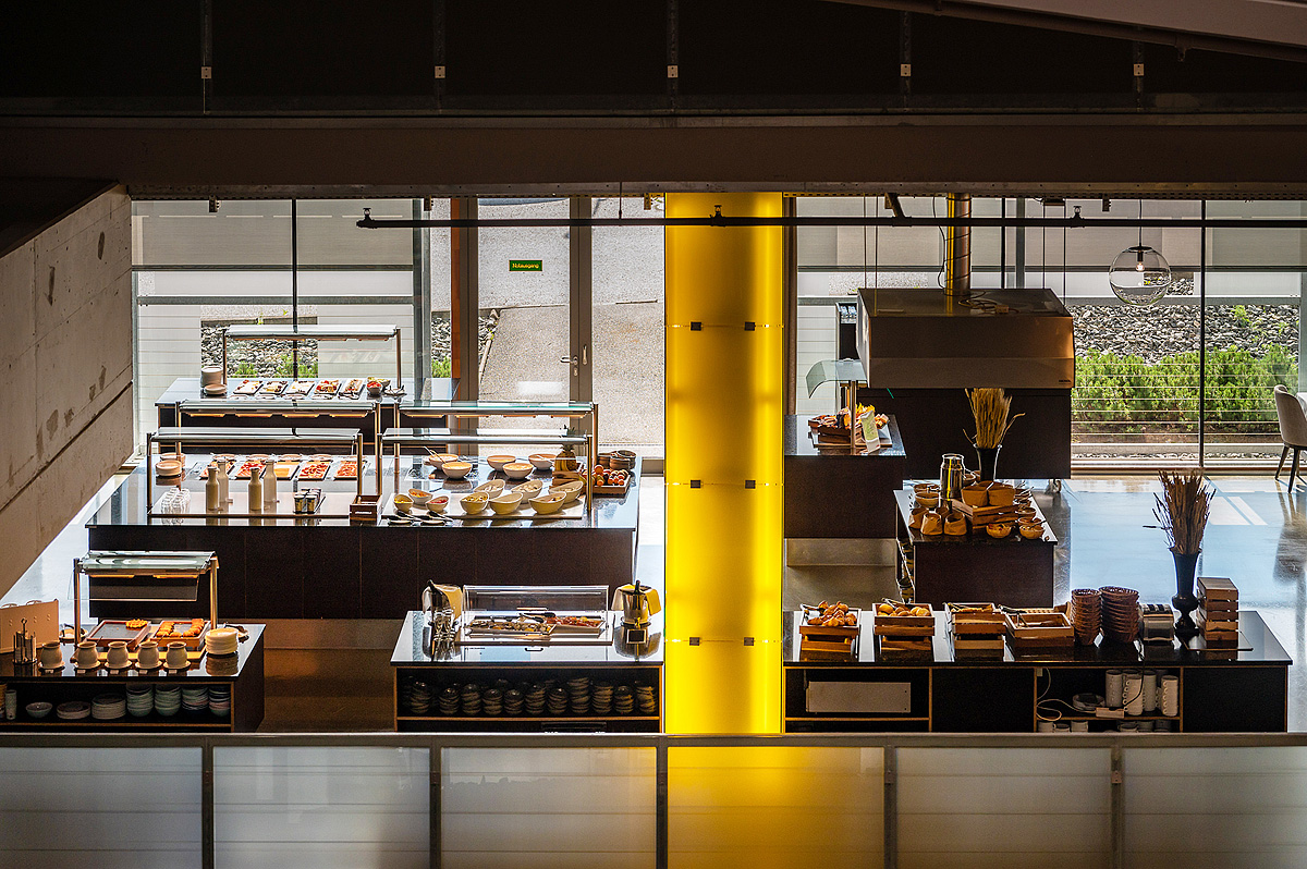 formou bufetu s výběrem hlavního jídla s přílohou, předkrmů, polévek, salátů a dezertů, nápoje za poplatek