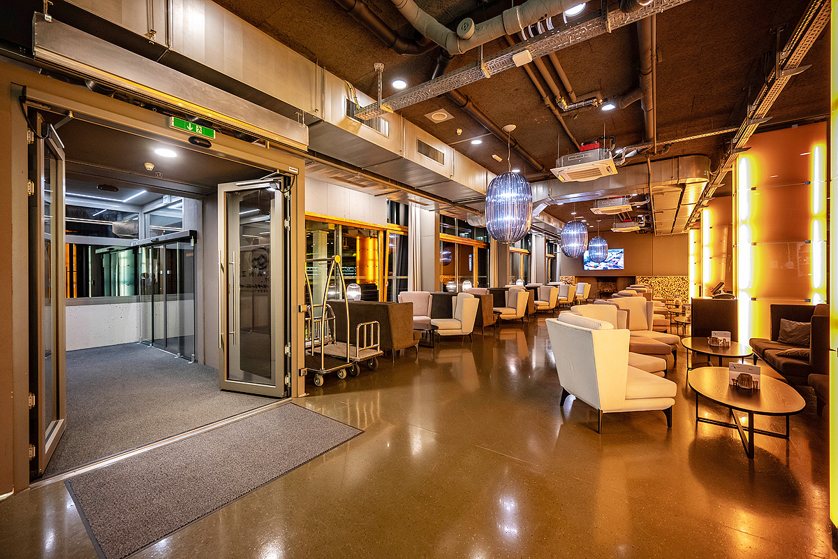 recepce / lobby / bar / velká společenská místnost s TV a krbem, restaurace vyhrazená pro hotelové hosty, bar se sluneční terasou, dětská herna, 2x seminární místnost, wi-fi připojení k internetu, vyhrazené parkoviště