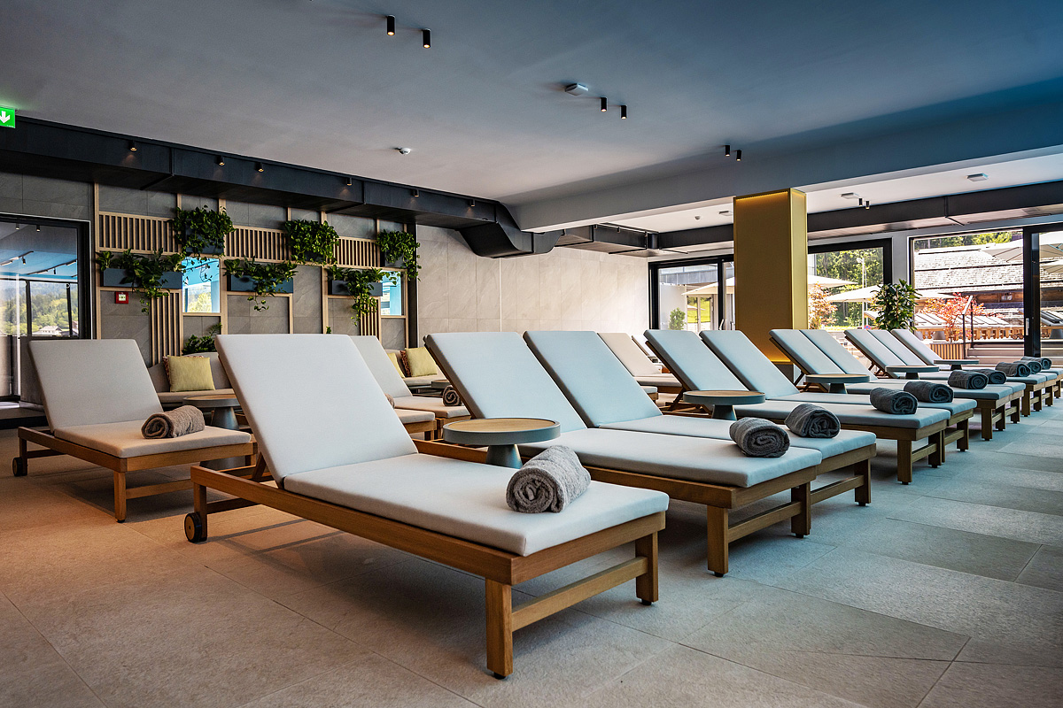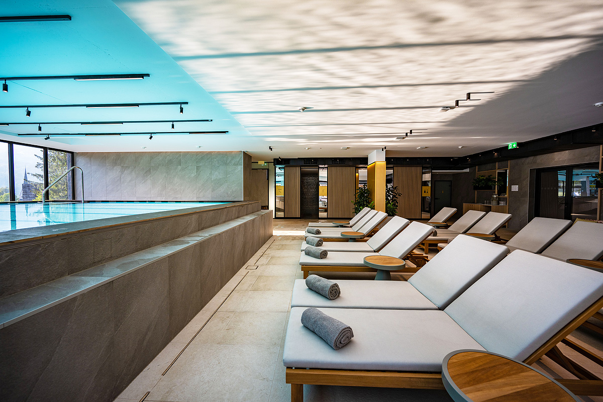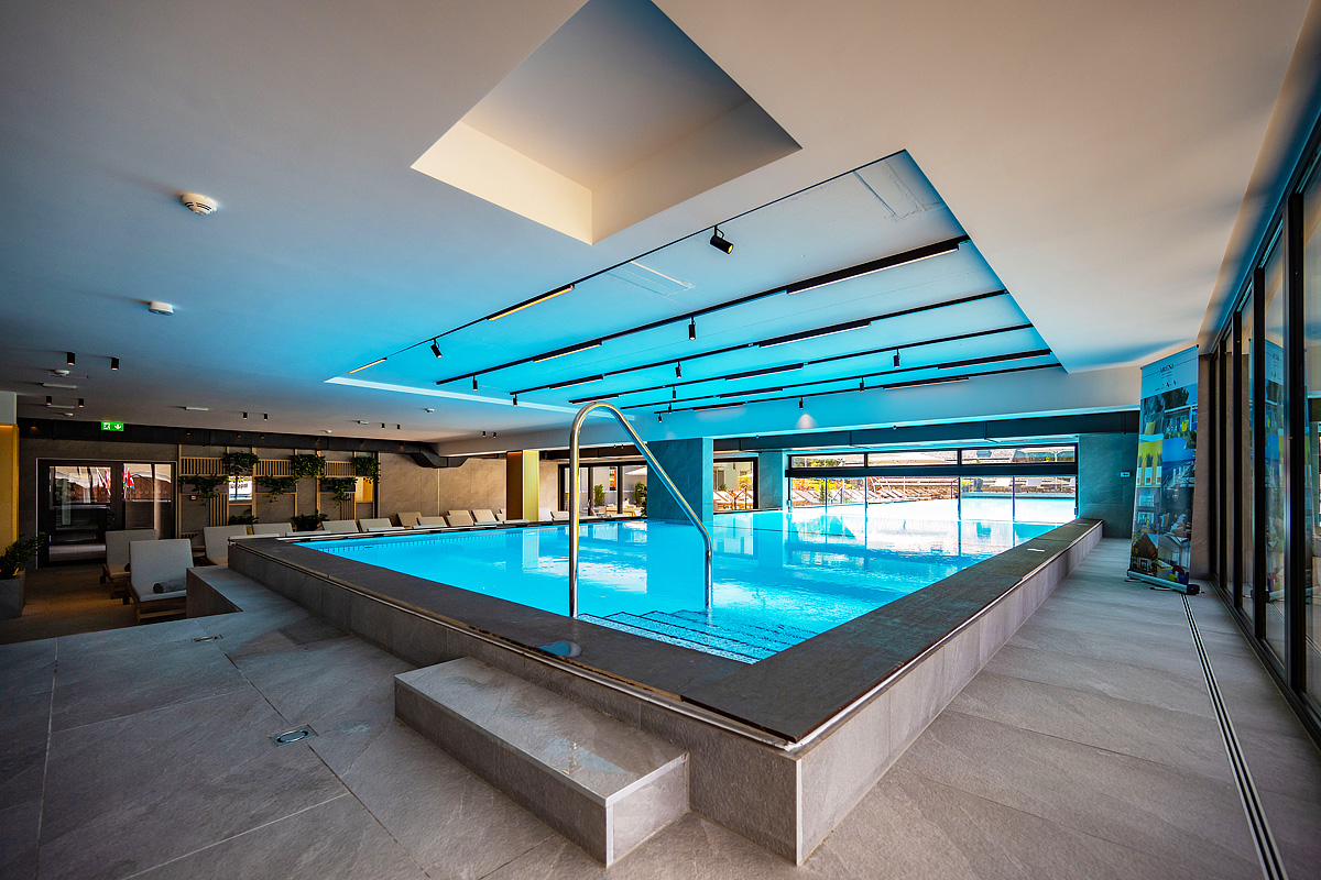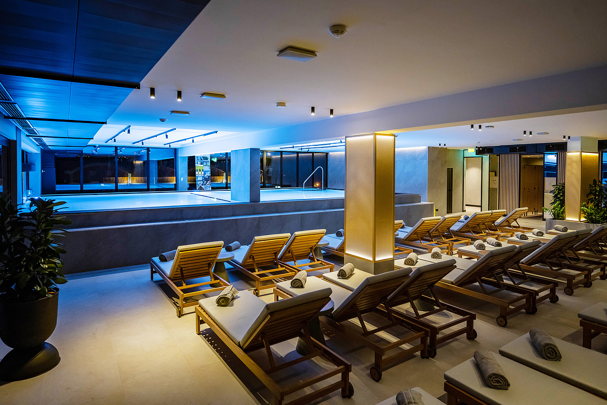 bazén, sauna, pára, relaxační místnost s lehátky; profesionální lezecká stěna s vybavením, lezecká stěna pro děti