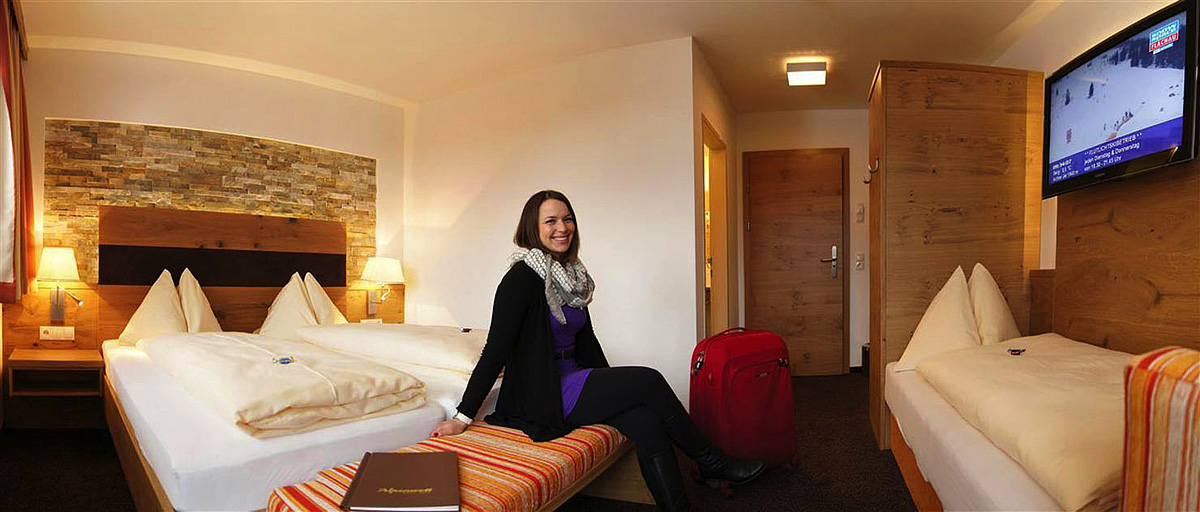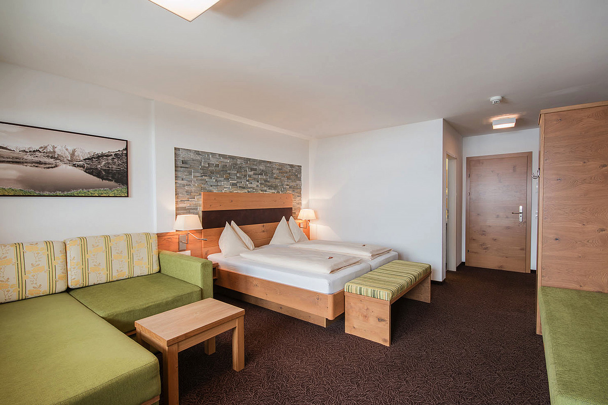 25 m² - pokoj s manželskou postelí a rozkádací gauč pro 1 dítě do nedovršených 15 let, sociální zařízení, balkon; min. a max. obsazenost pokoje jsou 2 dosp. osoby a 1 dítě d nedovršených 15 let; infant nad maximální obsazenost pokoje není povolen!