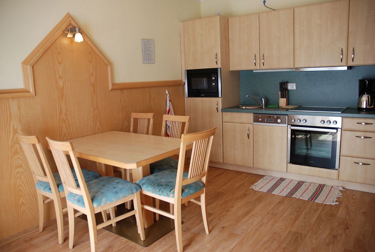 52 m² - 2 ložnice se 2 manželskými postelemi, obývací pokoj s kuchyňským koutem a rozkládacím gaučem pro 2 děti do nedovršených 17 let, sociální zařízení, balkon; maximální obsazenost pokoje 4 osoby a 2 děti do nedovršených 17 let; infant nad maximální obsazenost pokoje není povolen!