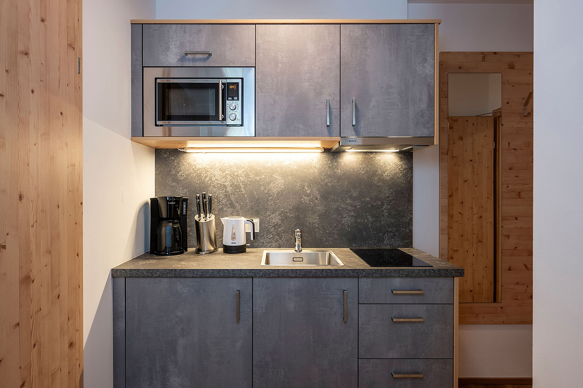 18 m² - obývací pokoj s kuchyňským koutem a manželskou postelí, sociální zařízení, balkon; nelze infant nad rámec plného obsazení apartmánu!