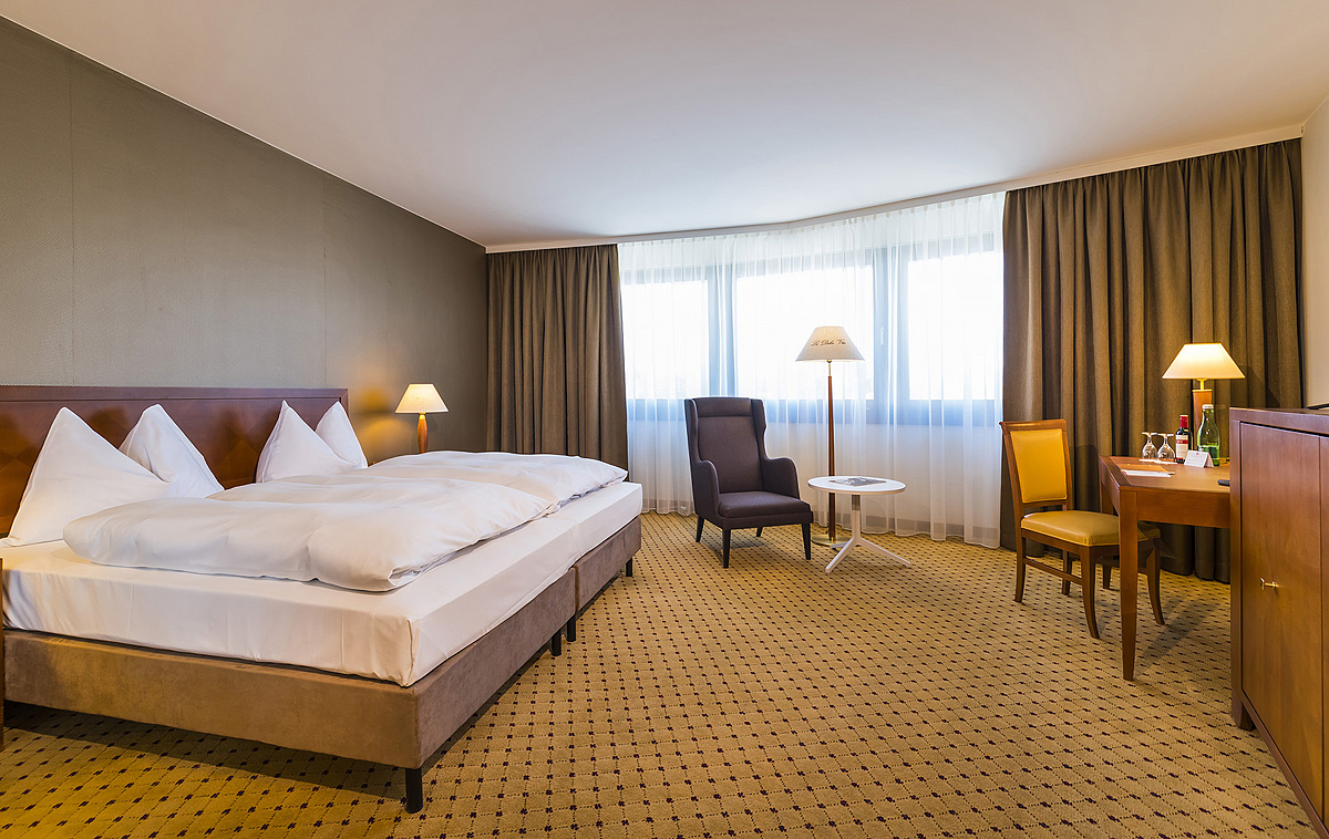 TV sat., varná konvice a set na přípravu kávy a čaje, mini lednička, klimatizace, wi-fi připojení k internetu