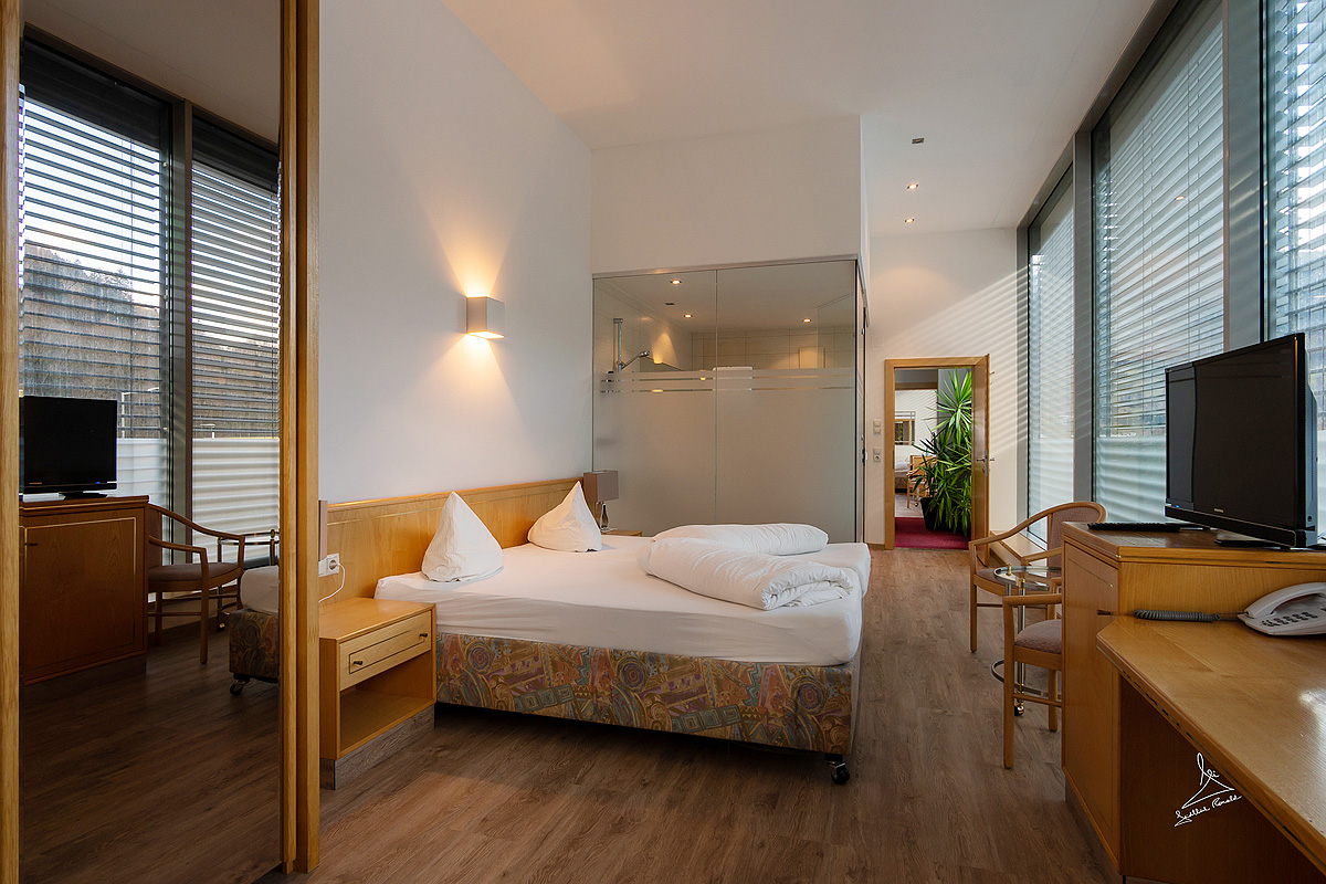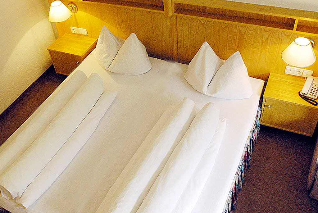 pokoj s manželskou postelí či 2 samostatnými lůžky a případně rozkládacím gaučem či přistýlkami až pro 2 děti do nedovršených 16 let, sociální zařízení se sprchou či vanou, zřídka balkon