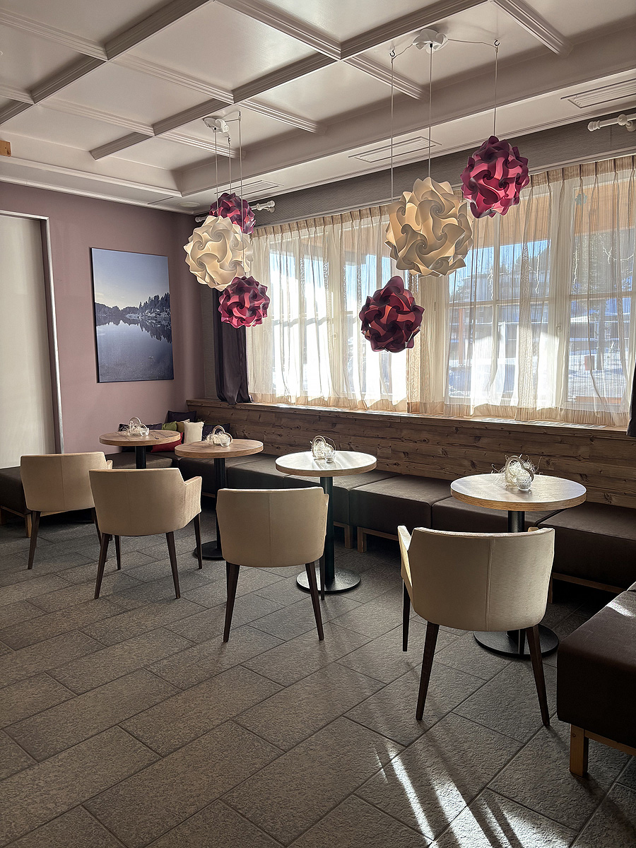 ubytovací komplex skládající se z mnoha chaletů a budovy s recepcí vzdálené cca 2 km