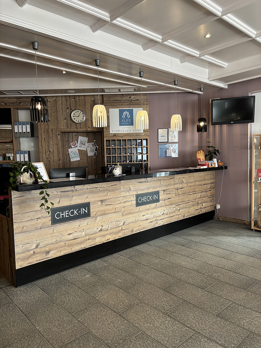 recepce (nedaleko lanovky Kornockbahn) i pro všechny chalety, parkování u jednotlivých chaletů