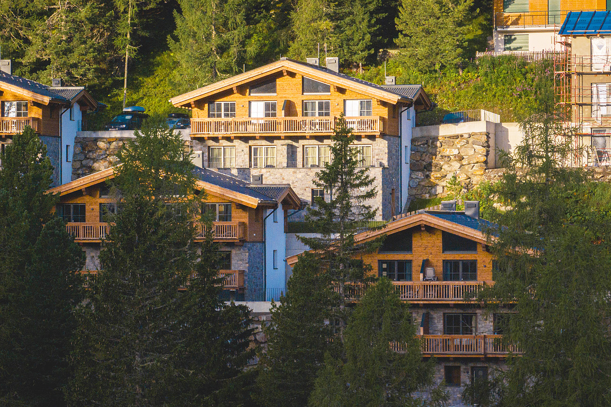 recepce (nedaleko lanovky Kornockbahn) i pro všechny chalety, parkování u jednotlivých chaletů