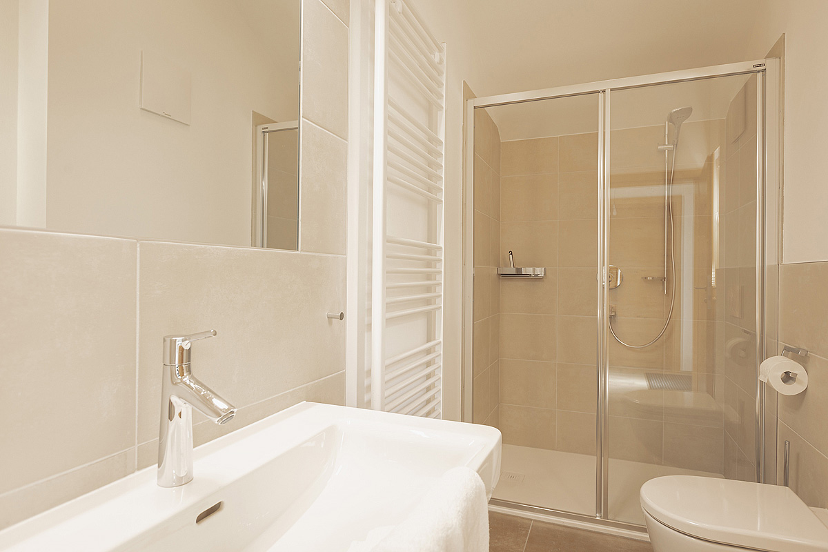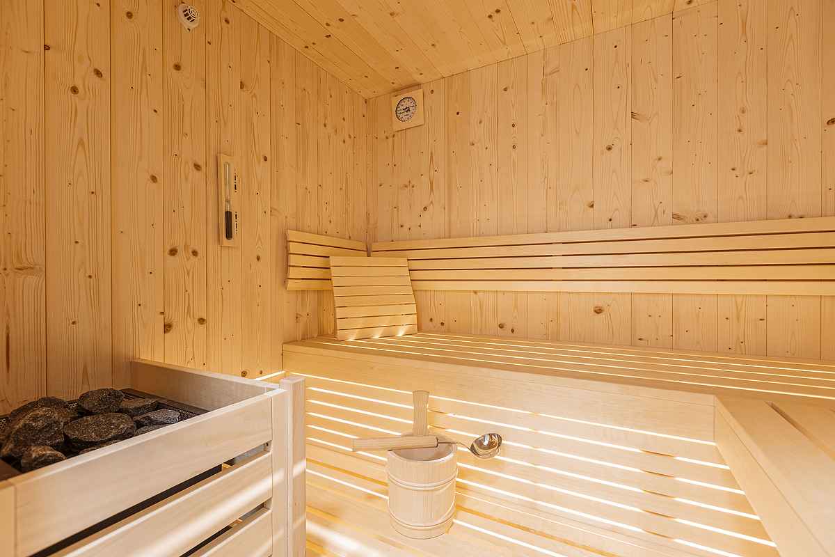 80 m² - 3x ložnice s manželskou postelí, obývací pokoj s kuchyňským koutem, 3x sociální zařízení, oddělené WC, privátní sauna, balkon či terasa
