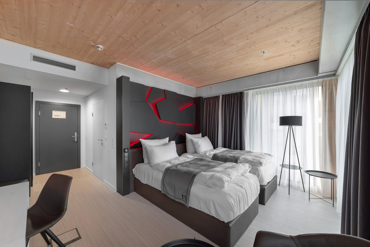 41 m² - ložnice s manželskou postelí, obývací pokoj s kuchyňským koutem a rozkládacím gaučem pro 1 osobu, sociální zařízení se sprchou; minimální obsazenost pokoje jsou 3 osoby či 2 osoby a 1 dítě