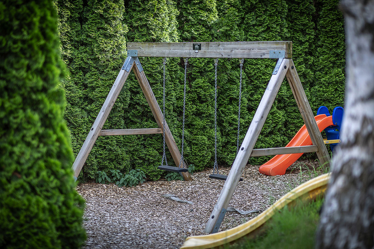 jedná se o 2 budovy vzájemně propojené krytou lávkou a jednotlivé chalety; v hlavní budově se nachází recepce, jídelna a bar, ve vedlejší pak wellness zázemí, dětský koutek a úschovna jízdních kol