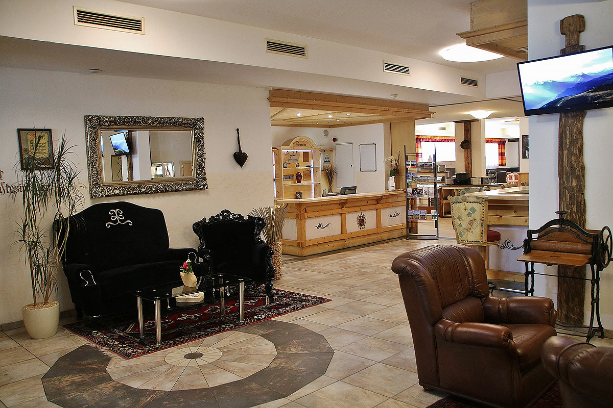 recepce / lobby / wi-fi připojení k internetu, restaurace vyhrazená pro hotelové hosty / bar, sluneční terasa s posezením, zahrada, dětské hřiště, vyhrazené parkoviště, garáž
